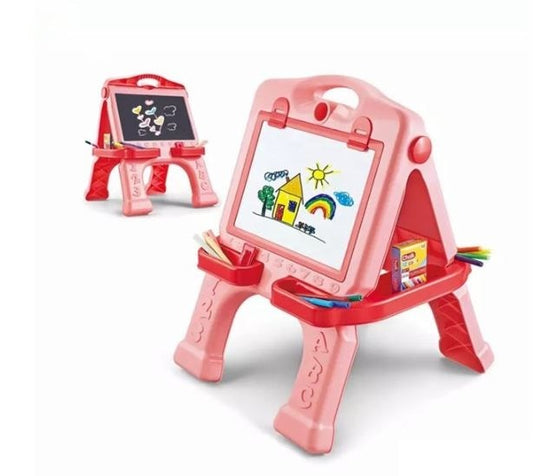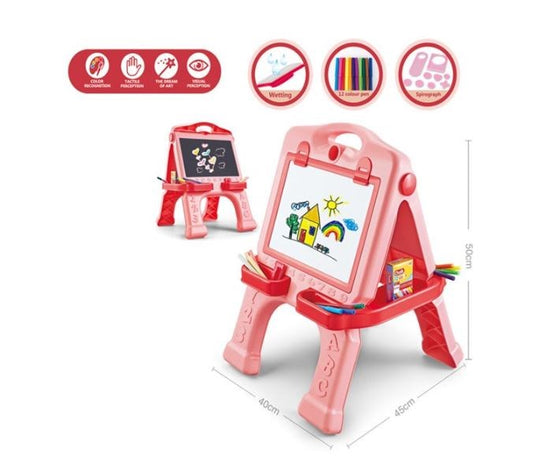 Unleash your child's creativity with this Double-Sided Drawing Board! Perfect for young artists, this versatile board features both a chalkboard and a whiteboard, allowing kids to explore various mediums and express their imagination.