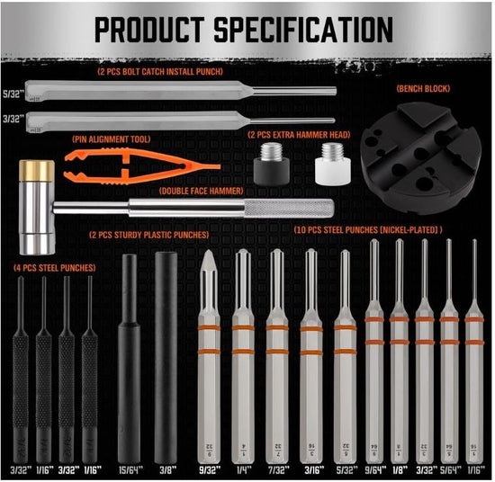 The 23pc Hammer Drill Set 95209S is a high-quality toolset designed for precision, durability, and ease of use. Whether you're working with firearms, machinery, or other intricate tasks that require punch and alignment tools, this set provides all the necessary components for efficient and safe work.