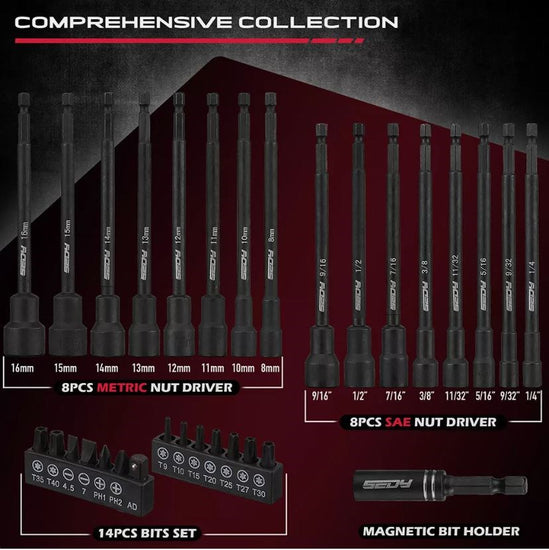 - Metric Nut Drivers: 16mm, 15mm, 14mm, 13mm, 12mm, 11mm, 10mm, 8mm.