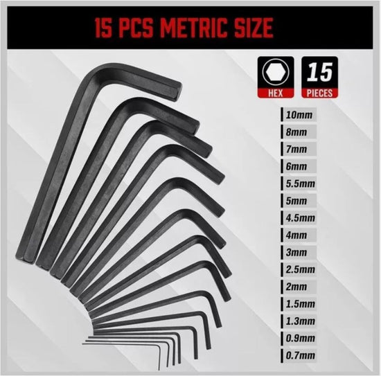 Long & Short Hex Wrenches: This set includes a full range of both long and short wrenches, giving you the flexibility to work in tight spaces or on larger, more accessible fasteners.