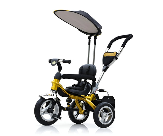 This stylish and functional convertible tricycle is available in a variety of vibrant colors, including a classic Red, a sleek Blue, an elegant Gold, and a playful Green, ensuring a style for every child.