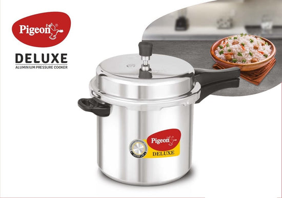 The Pigeon Deluxe Pressure Cooker is a high-quality cooking appliance crafted from durable aluminum, designed for efficient meal preparation. With an impressive capacity of 12 liters, this pressure cooker allows you to whip up large meals quickly, saving time in the kitchen. Its robust construction ensures even heat distribution, making it perfect for steaming, boiling, and cooking a wide variety of dishes.