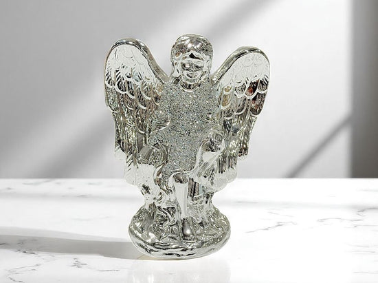 Grace your space with the Angel with Wings Decor H0898, a stunning silver resin piece showcasing a serene angel figure with detailed outspread wings. Its shimmering finish and intricate craftsmanship make it a perfect centerpiece for mantels, sideboards, or display shelves—offering a peaceful and elegant accent to any room.