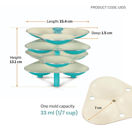 Colour Aqua finish idli stand designed to make 12 large soft idlis in one batch. Ideal for home breakfast, family meals, Indian brunch & fast steaming inside compatible pressure cookers.
