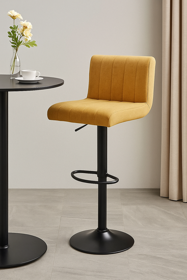 Elevate your space with our sleek and stylish black bar stool featuring a vibrant yellow seat. Perfect for both entertaining guests and enjoying casual meals, this contemporary piece seamlessly combines comfort with elegance. Its sturdy construction ensures durability, while the eye-catching yellow finish adds a sophisticated flair to any bar or kitchen counter.