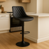 This all-black bar stool, with its combination of quilted design and functional comfort, is the perfect finishing touch to any contemporary or industrial space.