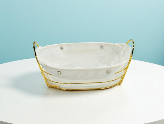 The YM11250G-W Storage Bread Basket combines modern elegance with everyday practicality. Featuring a gold-finished stainless steel frame and a removable white fabric liner, it’s perfect for serving bread, pastries, or organizing small kitchen items. Lightweight, stylish, and easy to clean, this basket adds a refined touch to any dining or countertop setting.