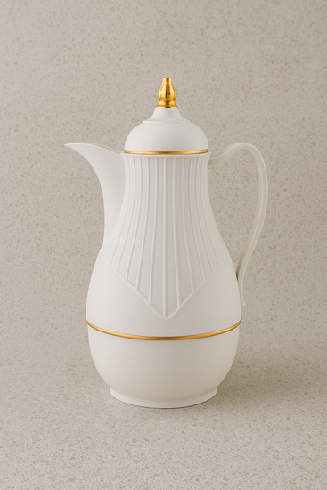 Serve your hot and cold beverages in style with this beautifully crafted 1L Vacuum Glass Flask. Designed with a refined white body, ribbed textured finish, and highlighted with luxurious gold accents, it brings both elegance and functionality to any occasion.