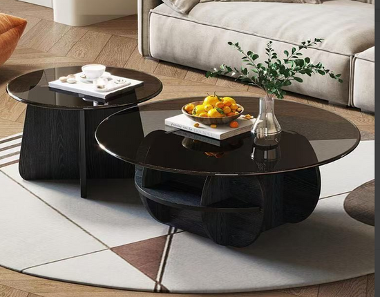 A striking centerpiece for any modern living room, this round coffee table set blends elegance with durability. The tempered black glass top paired with a solid wood base creates a sleek, contemporary look while ensuring everyday practicality.