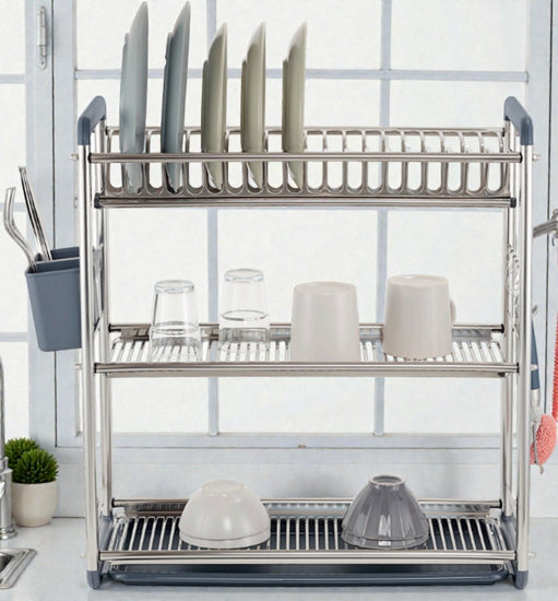 3-Tier Stainless Steel Dish Drying Rack with Utensil Holder