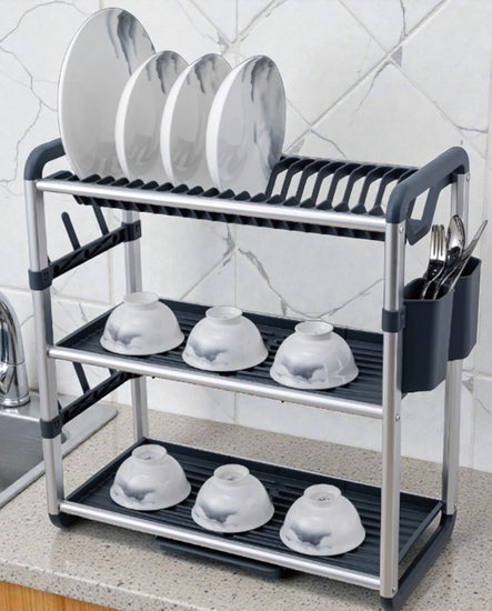 3-Tier Dish Drying Rack with Cutlery Holder – Grey