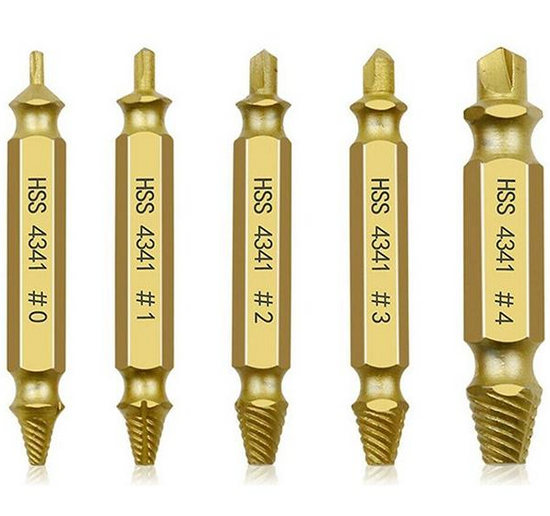 Remove damaged, stripped, or broken screws effortlessly with this 5-piece extractor set. Designed for both professionals and DIY enthusiasts, these precision-engineered tools are made from high-speed steel (HSS 4341) with a titanium coating for durability and efficiency.