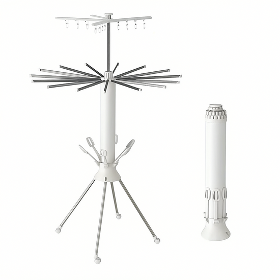 Includes layered drying arms for different garments:Top clips for socks and undergarments