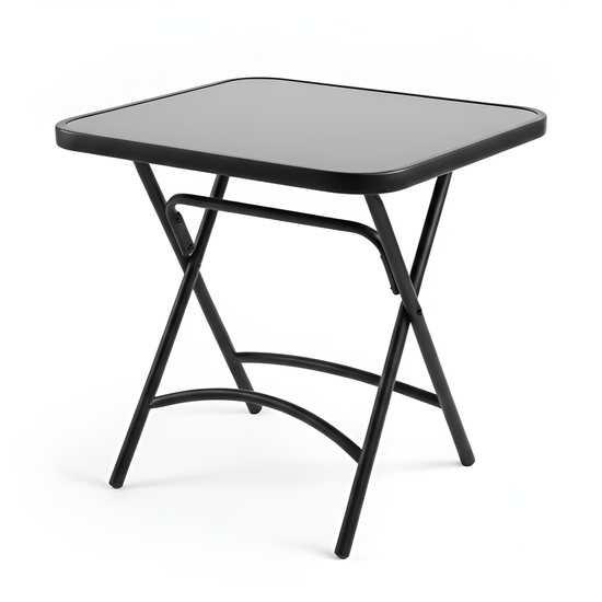 The DD20034 80cm Square Folding Table is a sophisticated and practical piece designed to make a statement. Featuring a large, smooth Black Tempered Glass top and a strong black metal frame, this table combines modern minimalism with ultimate convenience.