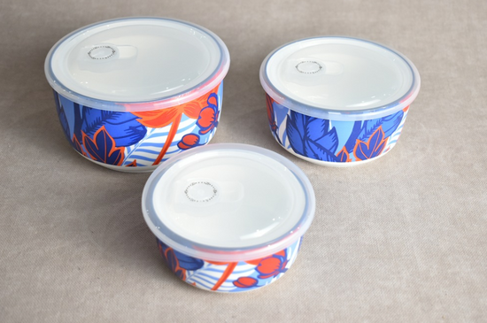 Upgrade your kitchen storage with this 3-piece food container set, designed to keep your meals fresh, organized, and leak-free. Crafted from high-quality porcelain and paired with durable plastic lids, this set is ideal for storing everything from snacks and fruits to full meals.
