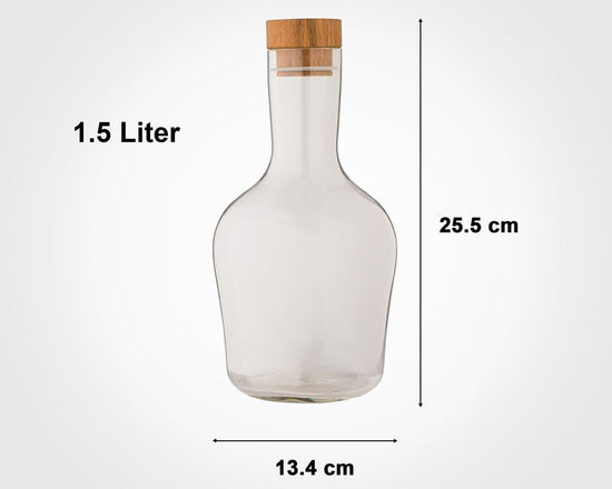 Serve your beverages with elegance and sophistication using the Glass Carafe - 1.5L. Perfect for larger gatherings or everyday use, this carafe is made from high-quality glass with a natural wooden stopper, offering both style and functionality to your kitchen or dining room.