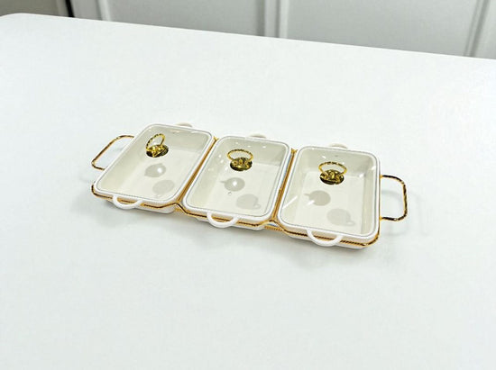 Golden Ceramic 3pc Chafing Dish Set – White & Gold
