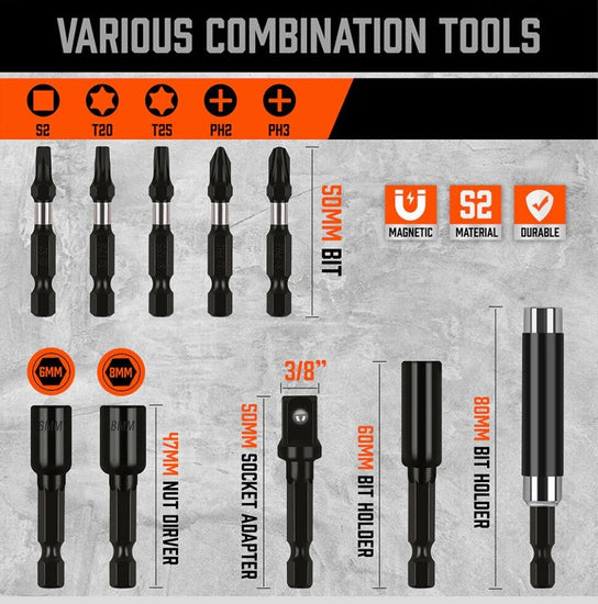Versatile Bit Selection: - Includes a variety of bits to accommodate different screw sizes and types, enhancing versatility for various projects.