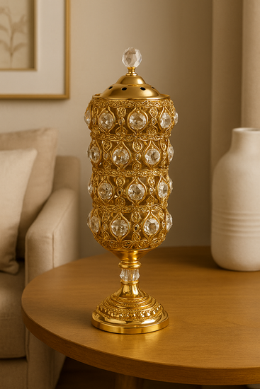 Elevate your space with the Incense Burner Stand SD456, a beautifully crafted piece that combines tradition with luxury. Featuring a striking gold finish adorned with crystal-style embellishments, this incense burner is as decorative as it is functional—perfect for creating a calming, aromatic atmosphere in your home.