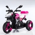 The Kids' Ride-On Motorcycle is available in three dynamic colors: a sleek Blue, a classic Red, and a playful Pink.