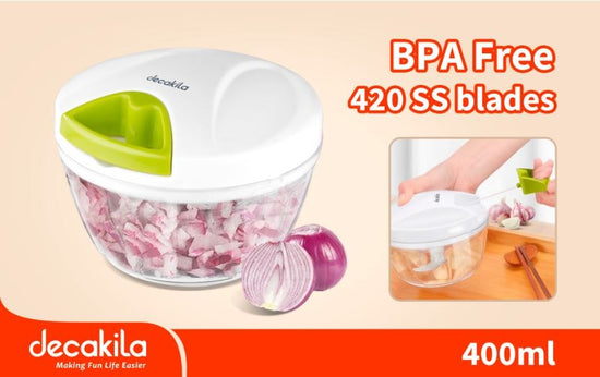Capacity: The chopper has a 400 ml capacity, which is ideal for chopping garlic, small vegetables, herbs, or other ingredients in moderate quantities.