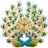 Vibrant feather detailing – intricate hand-painted colors in blue, green, and gold tones.