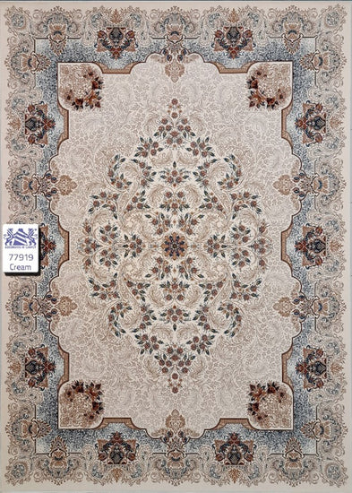 Persian Carpet 1.7m x 2.4m Cream 77919 - Cream with Grey & Brown Floral Design