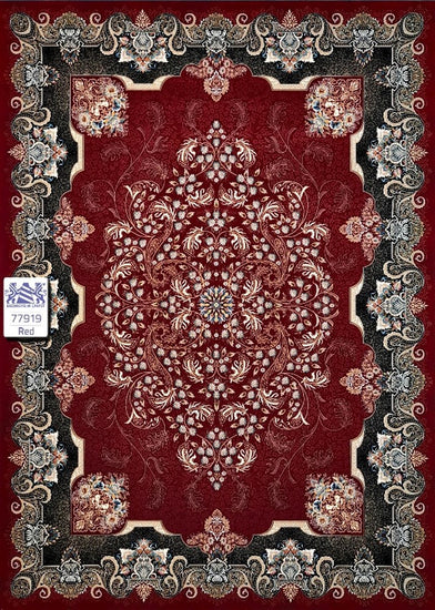 Persian Carpet 2m x 3m Red 77919 - Red with Black & Yellow Floral Design