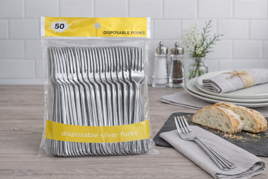 Plastic Silver Fork 50pc