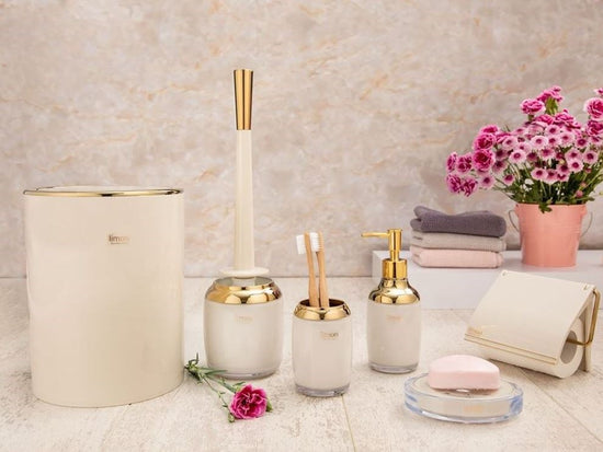 Enhance the elegance of your bathroom with our Romantic Bath Accessory Set. Featuring pristine white toiletries and a sleek soap dispenser, this set combines sophistication with practicality. Perfect for adding a touch of luxury to your daily routine, it elevates your bathroom decor with its chic and functional design.