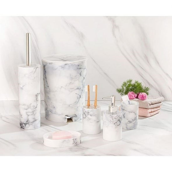 Introducing our Bathroom Set 6pc in Beige, a must-have for any modern bathroom. This stylish and functional set includes essential items designed to elevate your daily routine while enhancing your bathroom decor. The set features a toothbrush cup for convenient storage, a toothpaste cup, a soap dish, a tissue rack, a toilet brush holder, a liquid holder, and a dustbin. Each piece is crafted with high-quality materials to ensure durability and ease of use, providing both practicality and elegance to your bathroom space.