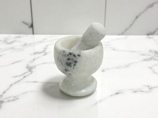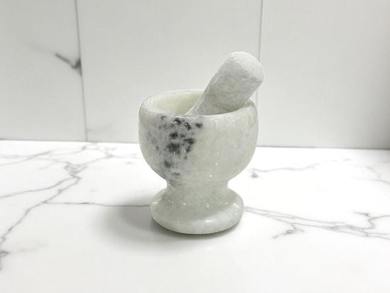 Designed for durability and elegance, the Large Marble Mortar and Pestle Set DD11780 is perfect for handling larger quantities of herbs, spices, and other ingredients. Crafted from solid grey-white marble with bold veining, this heavy-duty set delivers excellent grinding performance while adding a sophisticated touch to any kitchen. The broad base ensures stability, and the deep bowl prevents spills during use.