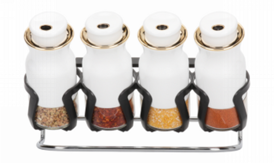 Upgrade your culinary experience with the Spice Rack Condiment 4pc Set O1021BJ, combining practicality and style for a beautifully organized kitchen!