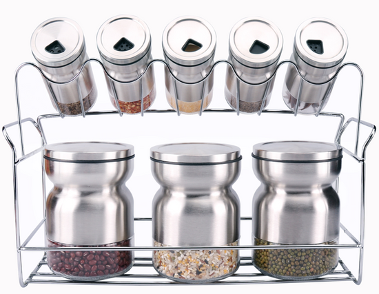 Perfect for home cooks and culinary enthusiasts alike, the Spice Rack Condiment Set (8pc A1016) not only organizes your spices but also elevates your kitchen’s aesthetic.