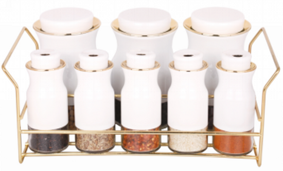 Keep your kitchen organized and stylish with the Spice Rack Condiment 8pc Set O1014BJ-J! This practical and elegant set is designed to store your essential spices and condiments while ensuring they are easily accessible.