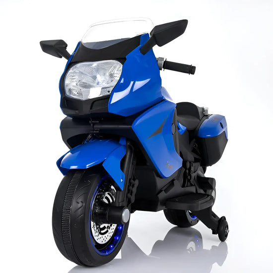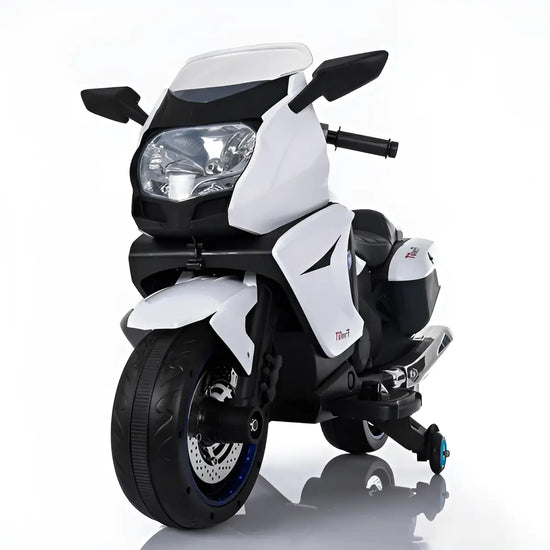 The Kids' Ride-On Motorcycle is available in three stylish colors: a sporty Blue, a clean White, and a vibrant Red.