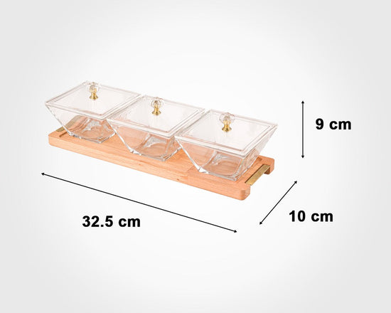 Square Snack Serving Tray Wooden Base 3 Section 224259