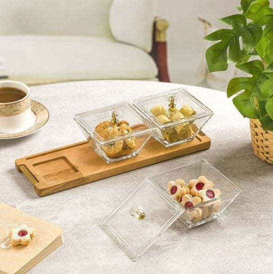 Square Snack Serving Tray with Wooden Base – Serve in Style with Versatility