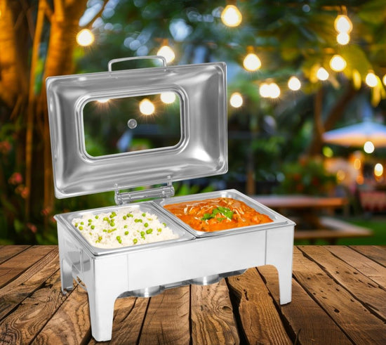 Impress your guests with the silver Rectangle Chafing Dish—a perfect blend of elegance and functionality for any occasion!