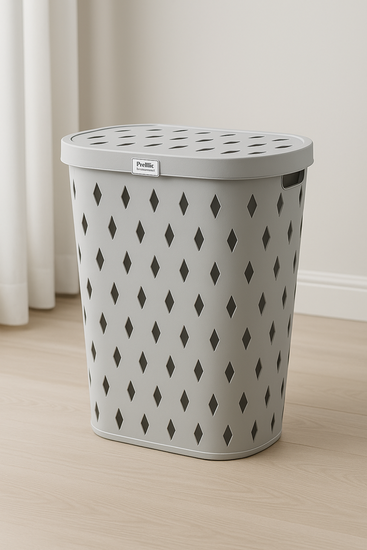 Keep your space organized and clutter-free with the Storage Basket With Lid DD1209. Designed for functionality and style, this storage solution features a modern diamond-cut pattern and comes with a secure lid for added convenience. Whether used in the bathroom, laundry, or bedroom, this versatile basket is perfect for storing laundry, toys, or miscellaneous items.