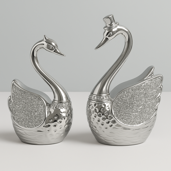 - Sophisticated Finish: The shimmering silver finish adds a touch of glamour, making these swans a striking focal point on your table or shelf.