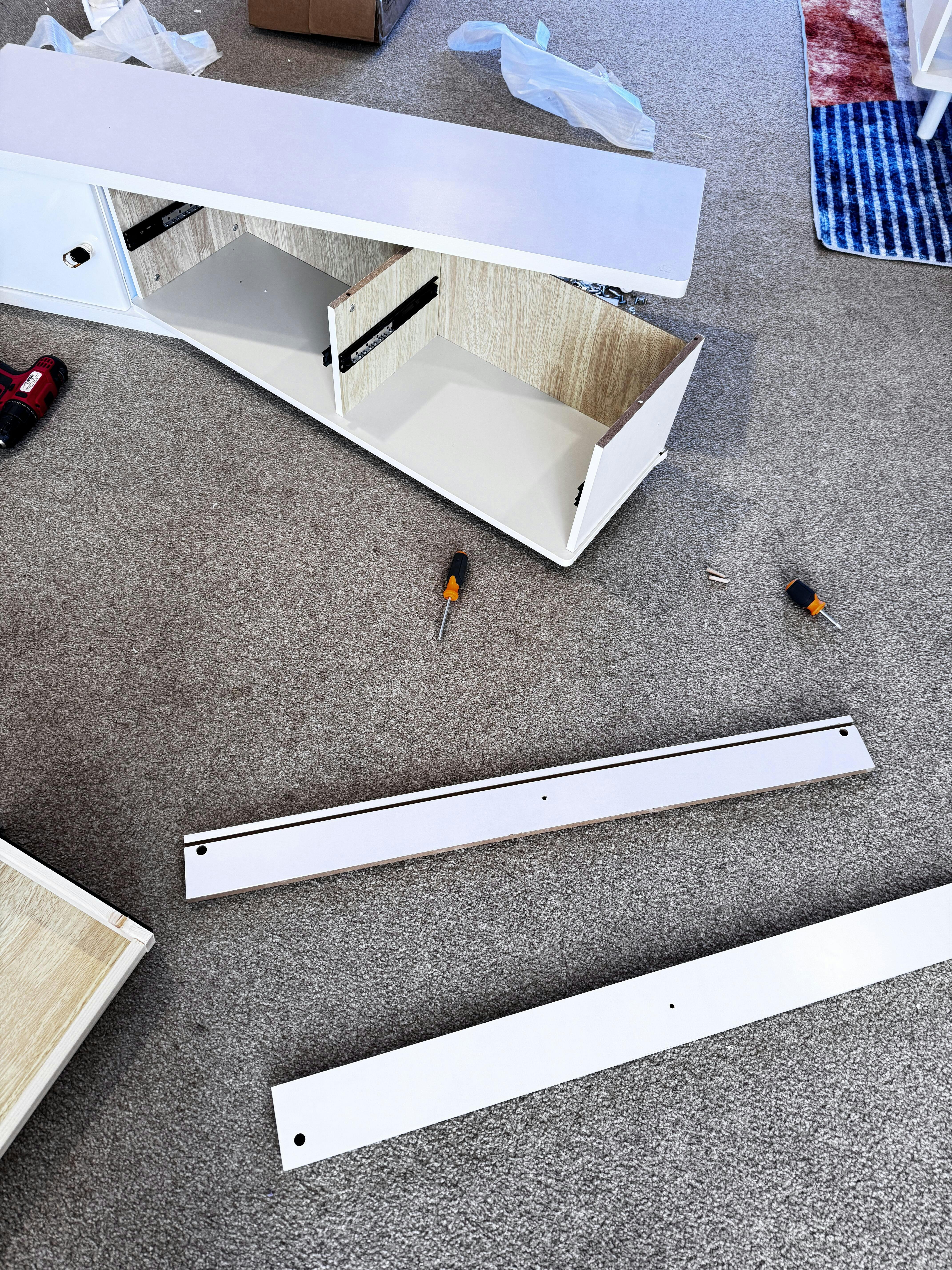 Customizes easily to fit TV sizes, wall space, and layout changes