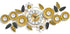 Unique layered floral design – gold textured circles, white blossoms, and metallic leaves.