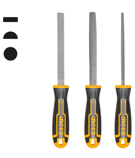 Enhance your woodworking toolkit with our 3-piece Wood File Set. This essential set includes a flat wood file for smoothing and shaping flat surfaces, a half-round wood file for working on curved or concave areas, and a round wood file for creating or refining round shapes. Each file measures 8 inches (200mm) in length, offering excellent reach and control for precise and smooth finishes.